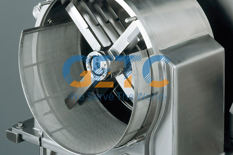 The machine is composed of a screen, a rotor and a feeder. The product goes through the feeding valve which ensures a consistent product flow to the milling chamber. Then the product is impacted by the high speed rotor and then becomes smaller particles which goes down through a screen mounting below the rotor. Customer can adjust the rotor speed and screen size to achieve required particle size distribution.