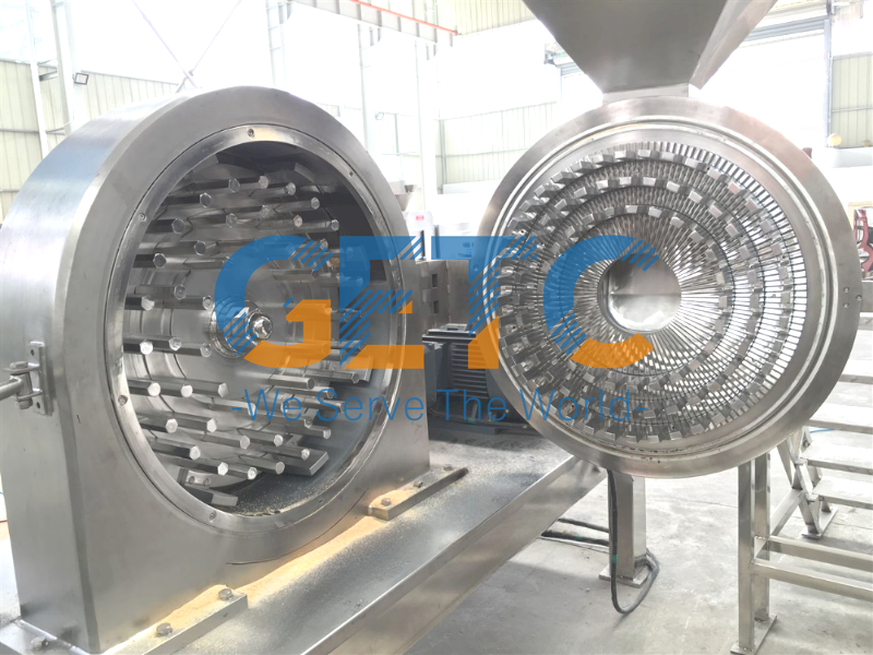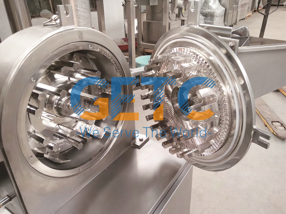 Model | Capacity (kg/h) | Speed Of Axis (rpm) | Inlet Size (mm) | Target Size (mesh) | Motor (kw) |